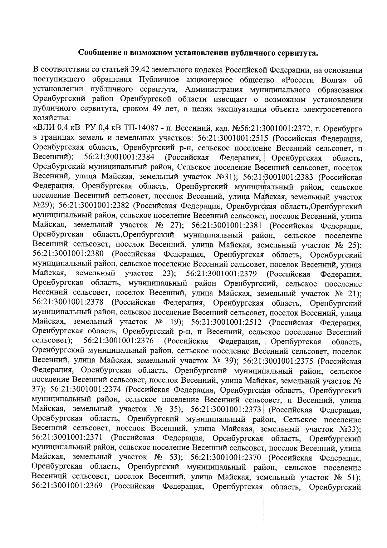 Скачать по ссылке: Сообщение о возможности установления публичного сервитута объект ВЛИ 0,4кВ