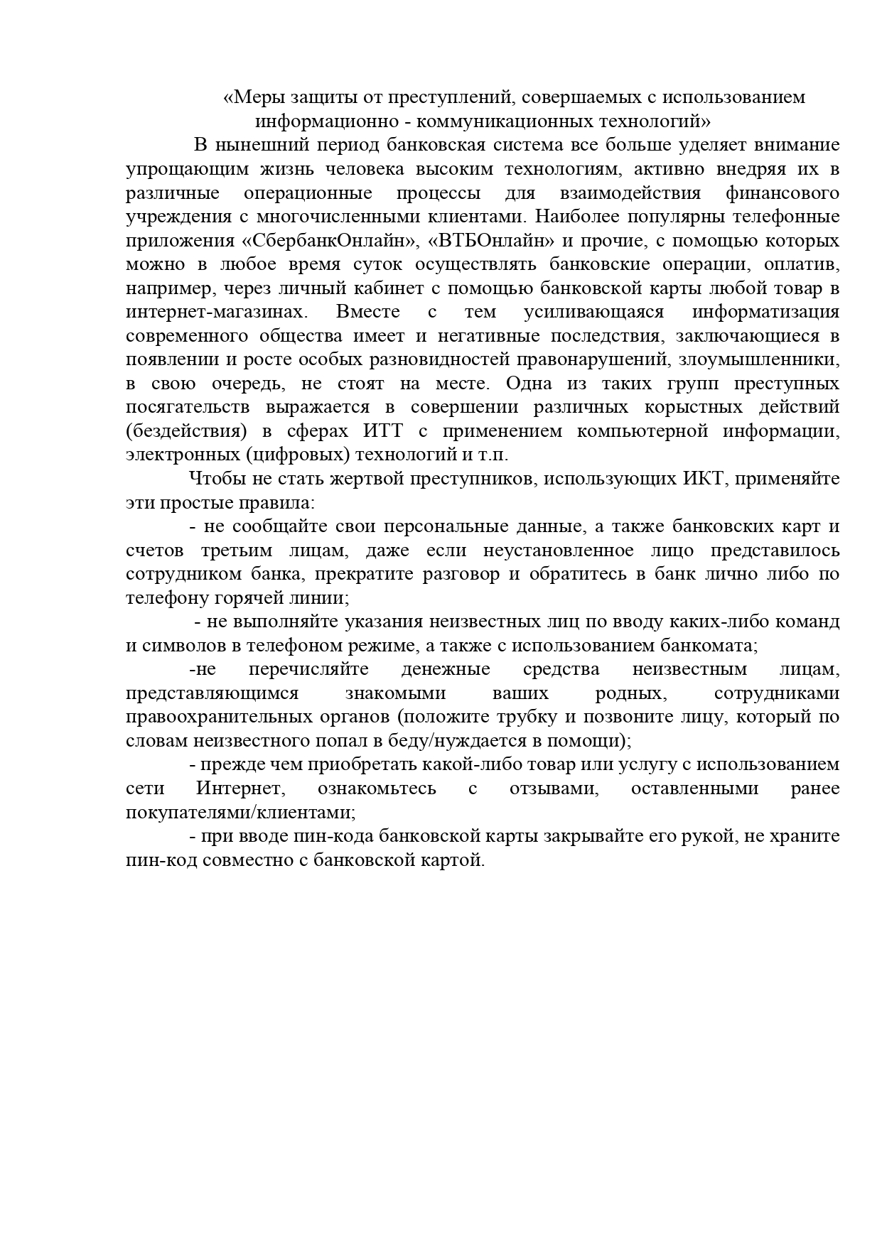 Меры защиты от преступлений, совершаемых с использованием информационно-коммуникационных технологий
