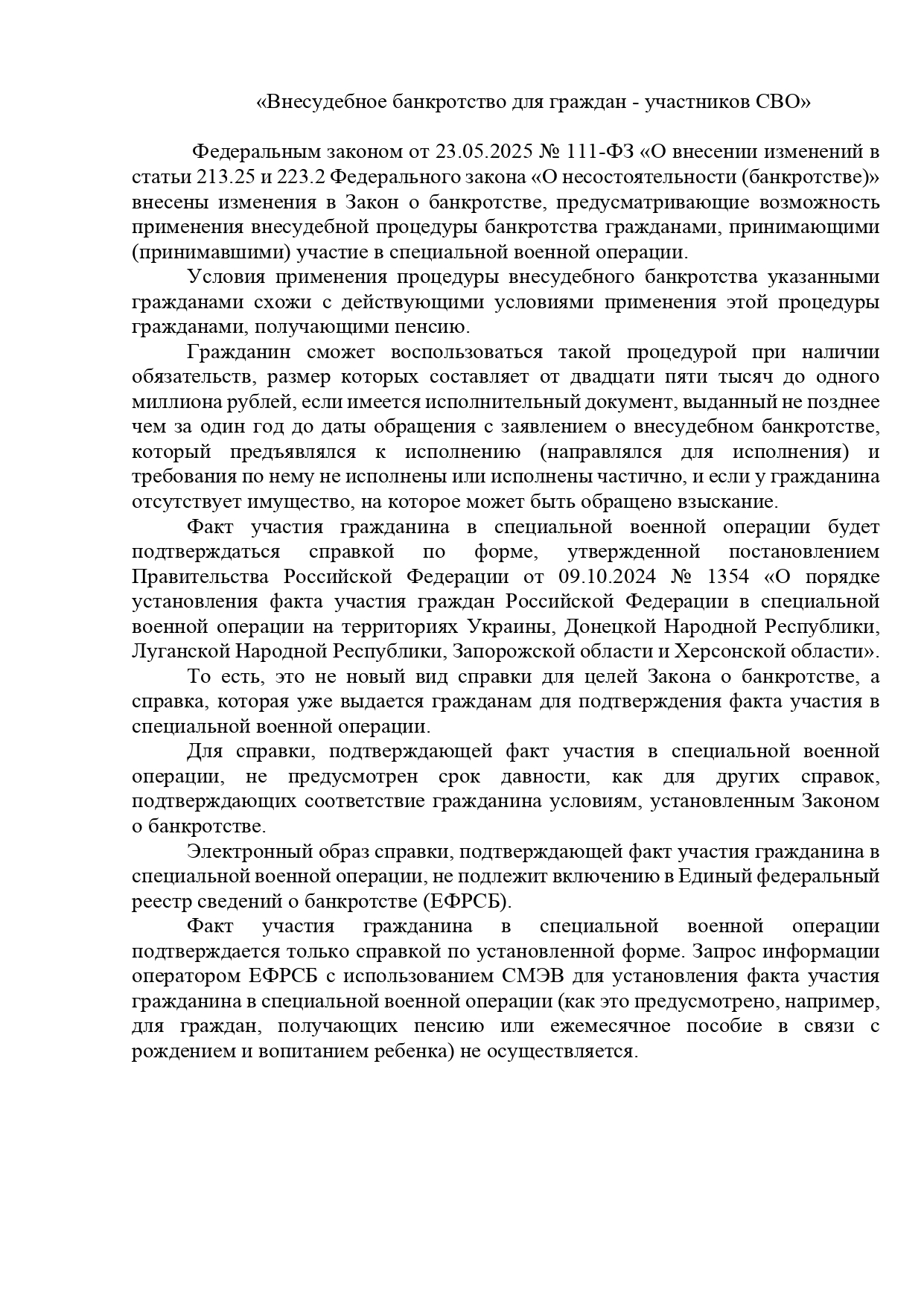 Скачать по ссылке: Внесудебное банкротство для граждан-участников СВО